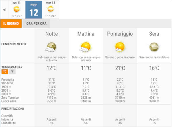 La temperatura massima registrata sarà di 21°C, la minima di 11°C.