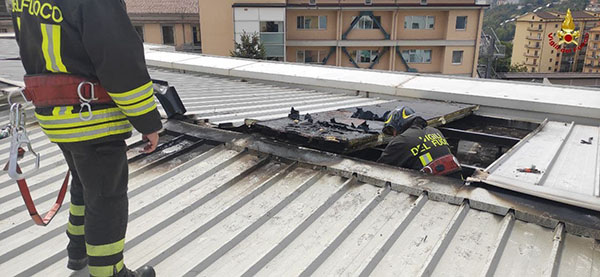 Con l’ausilio dell’autoscala, hanno subito raggiunto il tetto e rimuovendo la parte superiore della copertura costituita da lamiere, hanno spento l’incendio.