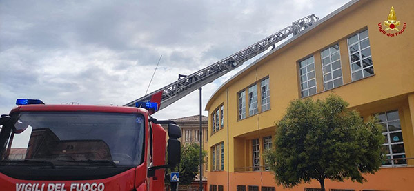 I Vigili del Fuoco giunti sul posto, hanno trovato il tetto dell’Istituto Comprensivo Statale A. Busciolano in fiamme.