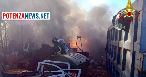 Giunti sul posto, hanno trovato prevalentemente materiale plastico in fiamme che sprigionava fumo denso ed acre.