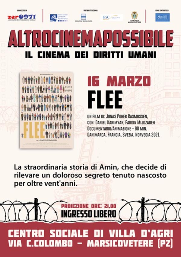 Giovedì 16 Marzo presso il Centro Sociale “A. Montano” di Villa d’Agri alle ore 21:00, ingresso libero, sarà proiettato Flee, documentario di animazione di Jonas Poher Rasmussen.