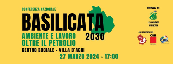Mercoledì 27 marzo dalle ore 17 presso il centro sociale di Villa d’Agri si terrà la Conferenza Nazionale di confronto sul futuro della Basilicata oltre il petrolio.