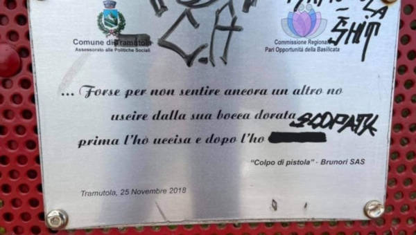 In provincia di Potenza imbrattata con frasi oscene una panchina rossa simbolo della lotta contro la violenza sulle donne.