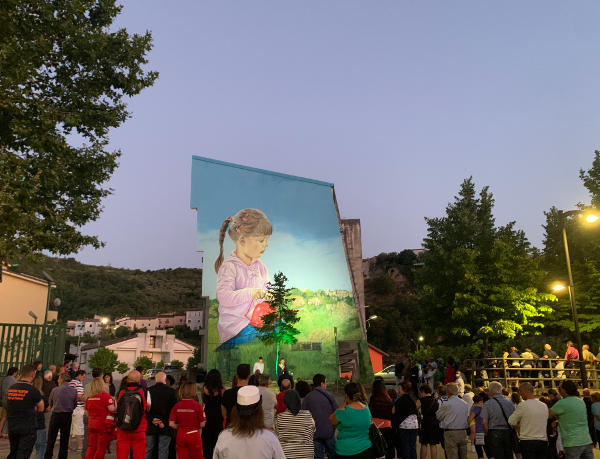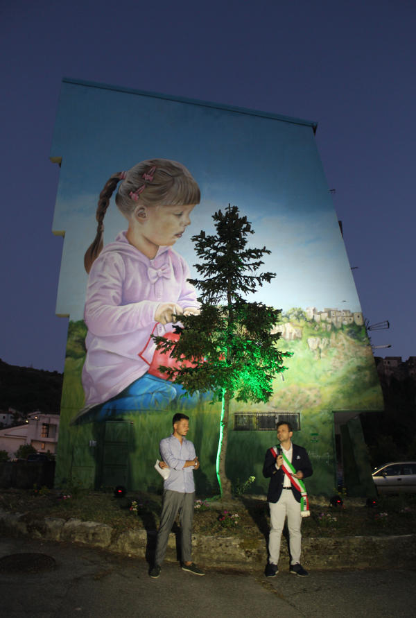 Il murales ritrae una bambina mentre annaffia la sua terra, simbolo del rispetto dell’ambiente, dell’appartenenza alla propria storia ed esempio di purezza e legalità.