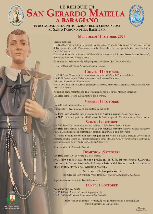 Come anticipato, a Baragiano il prossimo 15 ottobre la chiesa nuova sarà intitolata a SAN GERARDO MAIELLA.