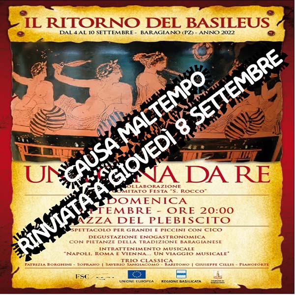 Il Sindaco Giuseppe Galizia è lieto di annunciare il “Ritorno del Basileus” a Baragiano.