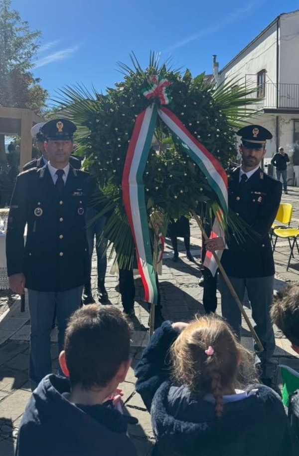 Poi, in corteo, le Autorità intervenute, i parenti del Caduto della Polizia di Stato ma anche tanti concittadini ed una rappresentanza degli alunni del locale Istituto Comprensivo, si sono recati presso il “Parco della Rimembranza” per deporre una corona di alloro al monumento in marmo dedicato all’Agente Scelto Francesco Tammone, scomparso tragicamente a Potenza il 10 luglio 1996, vittima di un conflitto a fuoco con un pregiudicato del posto.