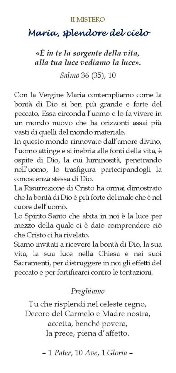 Ecco la proposta del Santo Rosario alla Beata Vergine Maria del Monte Carmelo e foto della Mostra.