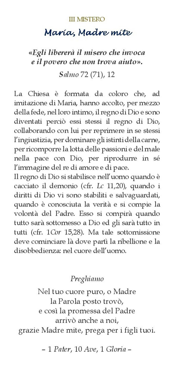 Appuntamento in Parrocchia tutti i pomeriggi, a partire dalle 18:00 per pregare Maria, nostra Madre e Maestra di vita spirituale.