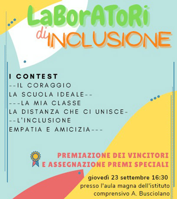 Il progetto “PresidiEducativiLucani” ha fatto tappa all’I.C. Busciolano di Potenza con la premiazione dei vincitori del primo Contest dei laboratori di inclusione tenutasi il 23 Settembre presso l’aula magna dello stesso istituto.