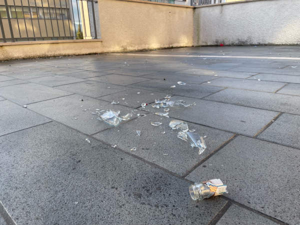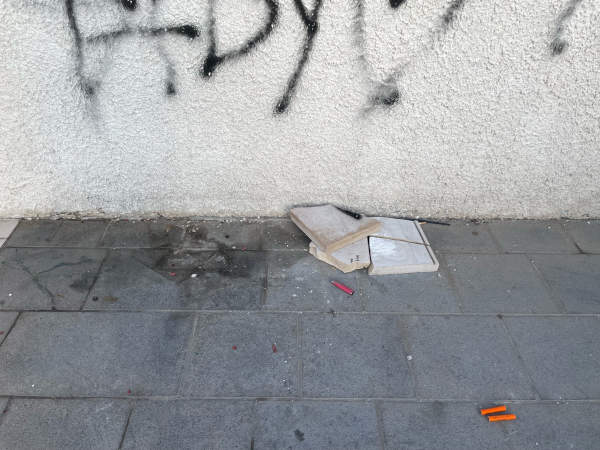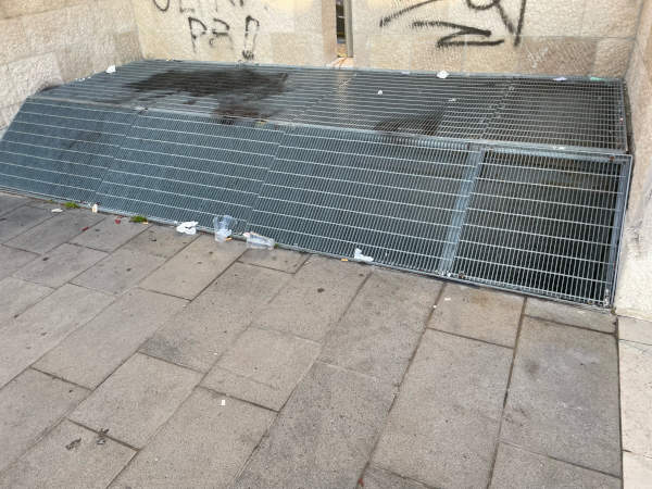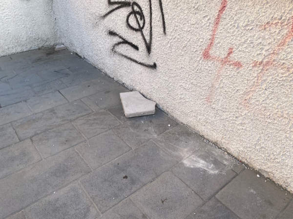 La zona è disseminata di pericolosi vetri e graffiti sui muri; molto spesso vi sono anche escrementi e immondizia in terra.