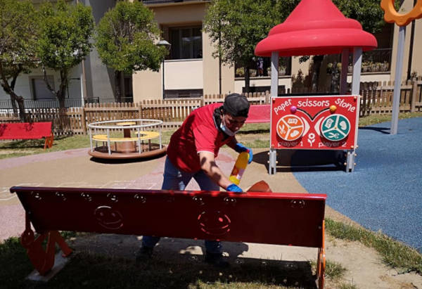 • igienizzare le mani all’entrata e all’uscita del parco giochi.