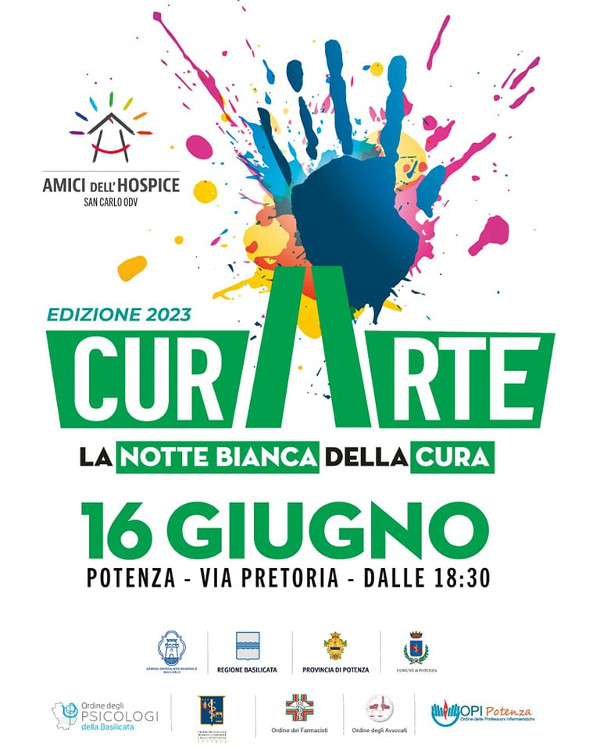 Il prossimo 16 Giugno 2023 dalle ore 18:30 alle ore 0:30 si svolgerà, in tutto il centro storico della città di Potenza, la Notte Bianca della Cura “CurArte”, organizzata dall’Associazione Amici dell’Hospice.