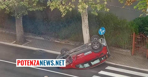 Di seguito la foto dell’auto coinvolta che è completamente ribaltata sull’asfalto nei pressi delle strisce pedonali.