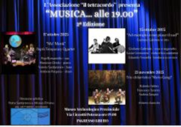 Dopo il grande successo dello scorso anno, Venerdì 17 ottobre 2025 avrà inizio la 2° stagione concertistica “Musica alle 19”, promossa dall’Associazione “il tetracordo”.