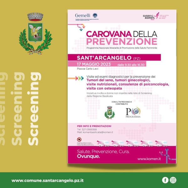 La “Carovana della Prevenzione” promossa dall’Associazione Komen Italia in collaborazione con il Policlinico Gemelli farà tappa a Sant’Arcangelo.