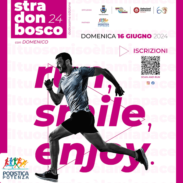 “Domenica 16 Giugno 2024 si rinnova l’appuntamento per tutti, in Piazza Don Bosco, per la Stradonbosco con Domenico: manifestazione di sport e aggregazione in spirito salesiano per ricordare la prematura e tragica scomparsa di Domenico Lorusso, giovane cresciuto e formato nell’oratorio, ormai amico di tutti; la comunità ha voluto legare il suo nome a questa sempre bella manifestazione”.