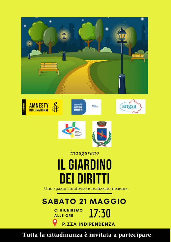 Domani 21 Maggio 2022 alle ore 17:30 sarà inaugurato a Potenza presso Piazza Indipendenza il “Giardino dei Diritti”.