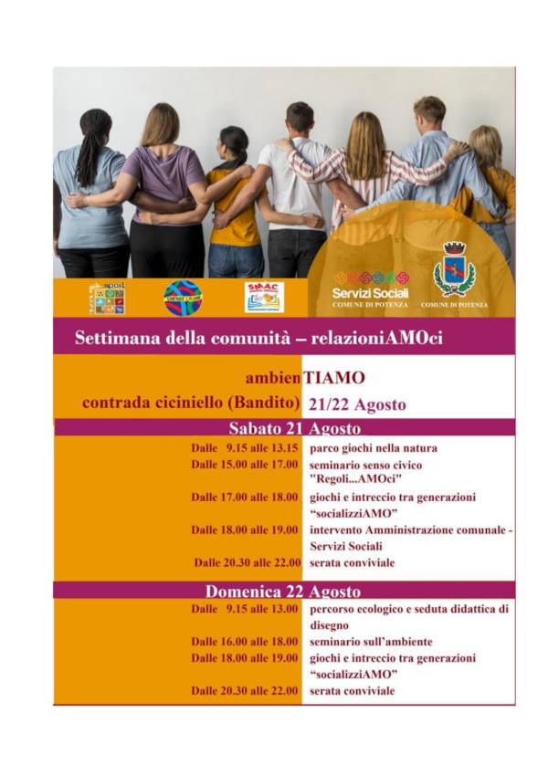 Potenza: la “Settimana della comunità” continua con tanti appuntamenti in programma! Ecco i dettagli