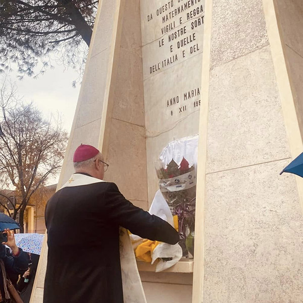 Dopo l’omaggio floreale ha chiesto “che ogni anno davanti a questa immagine le comunità parrocchiali, i gruppi, le associazioni, i movimenti e la cittadinanza offrano il loro omaggio floreale alla Madre di Dio che apre davanti a noi cammini di speranza”.