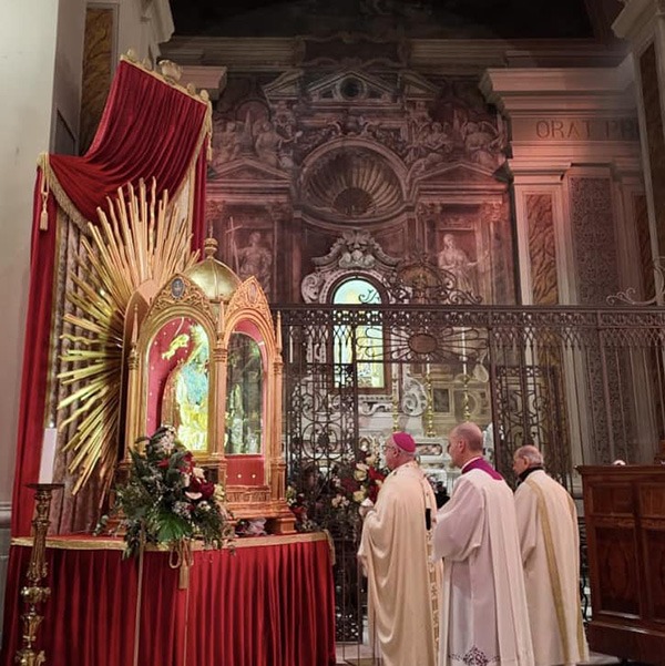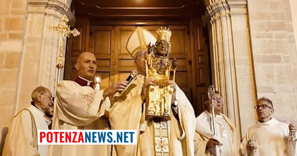 Alla fine della celebrazione, l’Arcivescovo ha benedetto i presenti prendendo in braccio il Bambinello dell’effige della Vergine del Sacro Monte di Viggiano.
