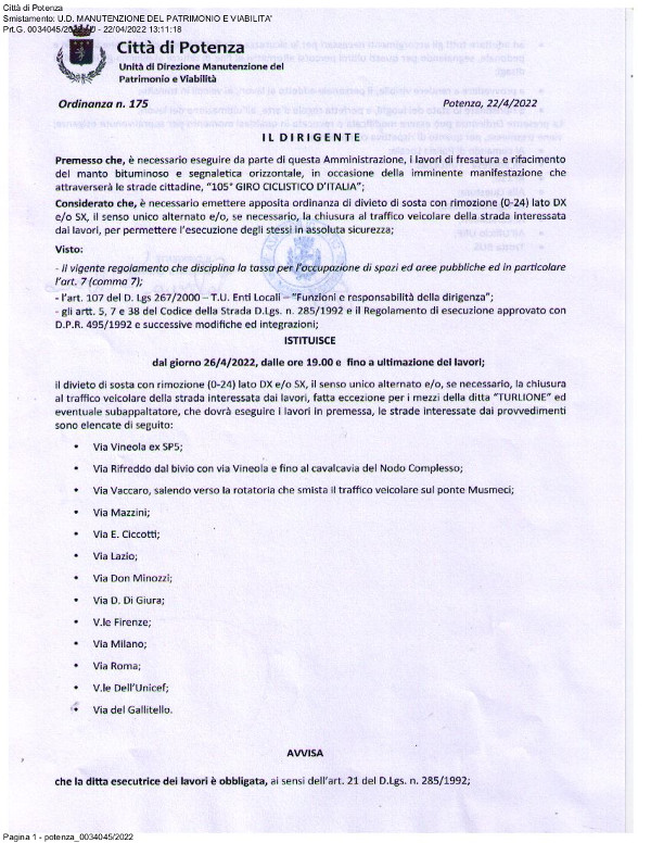 Potenza, le nostre strade rimesse a nuovo per il Giro d’Italia! Ecco le zone interessate