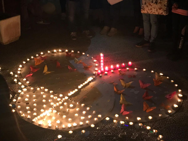 Oltre al lancio dei palloncini, fatto nella piazzetta, a terra è stata realizzata anche una farfalla con delle candele e lì sono stati elencati tutti i nomi dei bambini scomparsi.