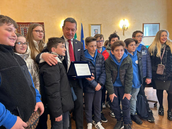 Questa mattina, l’ufficio del Prefetto di Potenza Michele Campanaro si è trasformato in aula scolastica per i 21 alunni della I H della Scuola Secondaria di Primo Grado “A. Busciolano” di Potenza, compagni di classe di Davide Ventimiglia, autore lo scorso anno, a 10 anni, di una toccante lettera indirizzata a Putin per chiedere la pace in Ucraina.