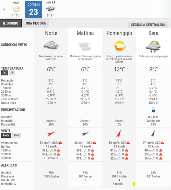 La temperatura massima registrata pare che sarà di 12°C, la minima di 6°C.