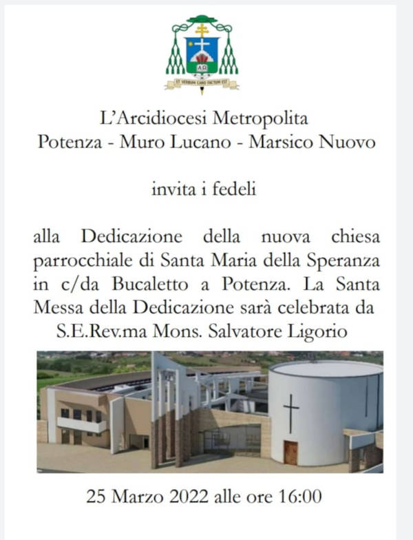 Si terrà venerdì prossimo, 25 marzo, alle ore 16.00, una solenne concelebrazione, presieduta dall’arcivescovo monsignor Salvatore Ligori, per la dedicazione della nuova chiesa del rione.