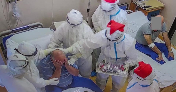 È il giorno di Natale, infermieri e medici hanno appena consegnato a tutti i pazienti Covid ricoverati alcuni biscotti.
