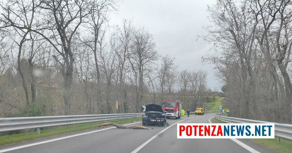 Disagi lungo la strada statale Potenza-Melfi, dove un albero è crollato improvvisamente sulla carreggiata a causa delle forti raffiche di vento che da ore stanno colpendo il Vulture-Melfese.