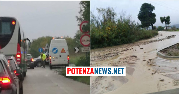 Le forti piogge della notte hanno reso impraticabile la strada Melfi-Sata piena di fango e detriti.