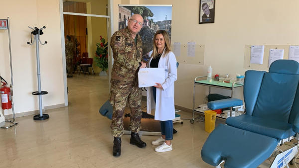 3) Il Comandante dona il CalendEsercito alla Dottoressa dell’AVIS