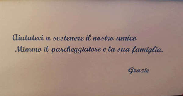 Questa mattina i suoi amici del centro storico di Potenza hanno consegnato alla moglie di Mimi’ l’incasso dei fondi raccolti.