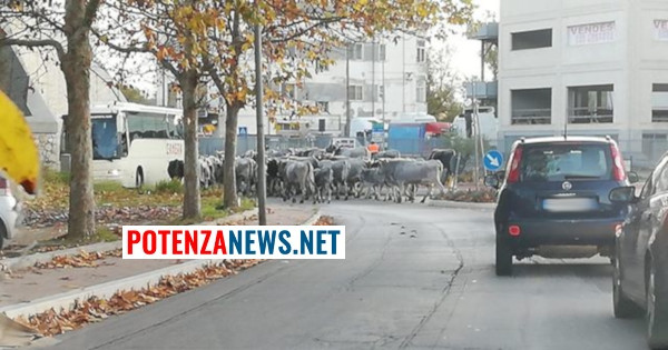 “Oggi una bella transumanza” il commento di un lettore che, trovatosi presso la rotatoria del nodo complesso a Potenza, ha assistito all’insolito passaggio.