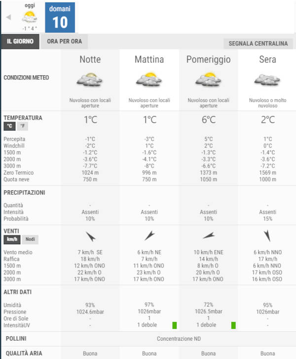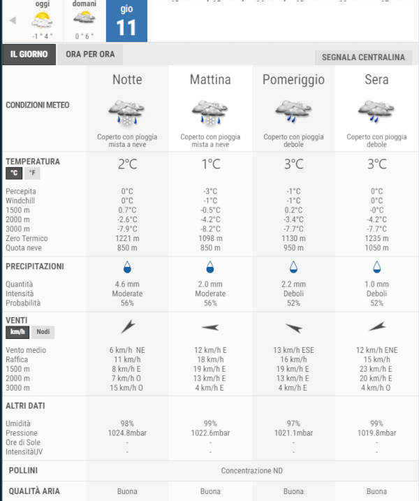 La temperatura massima registrata pare che sarà di 6°C, la minima di 1°C.