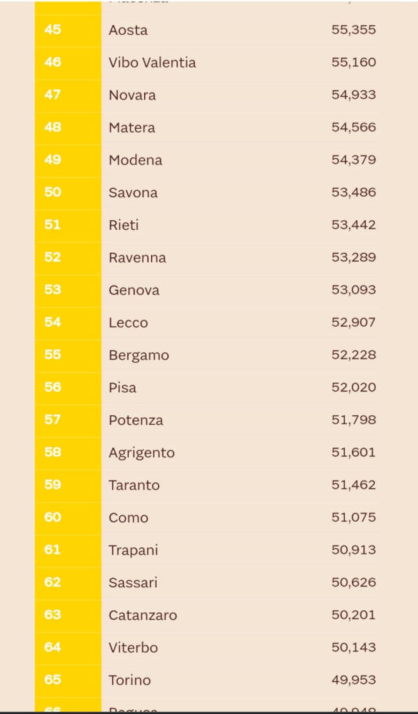 Rispetto al 2021, infatti, Matera ha migliorato la sua posizione di 41 posti e Potenza di 13.