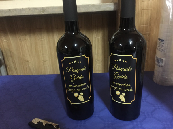 Questa la frase che si legge sull’etichetta delle bottiglie di vino Aglianico della sua terra, create per l’occasione dal figlio Vincenzo: