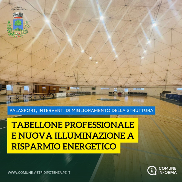 Nei giorni scorsi si è conclusa l’installazione della nuova illuminazione del Palazzetto dello Sport di contrada Santa Domenica, a seguito dell’acquisto di 20 lampade a led e a risparmio energetico.