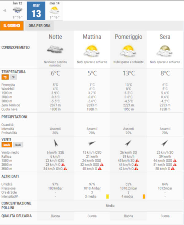 La temperatura massima registrata pare che sarà di 13°C, la minima di 5°C.