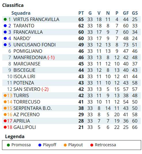 Ecco di seguito tutte le altre partite della Serie D Girone H e la classifica.