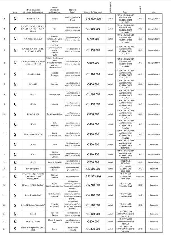 Potenza: oltre 125 Milioni di euro per sistemare queste strade della Provincia! I dettagli