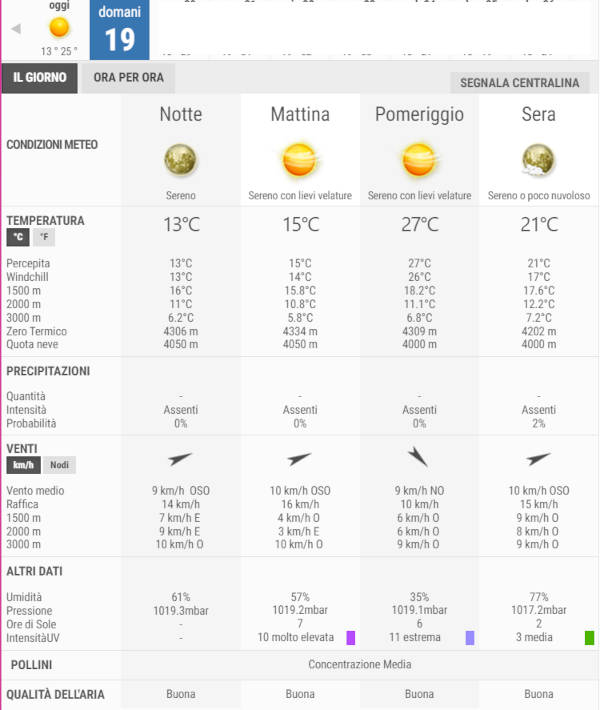 La temperatura massima registrata pare che sarà di 27°C, la minima di 13°C.