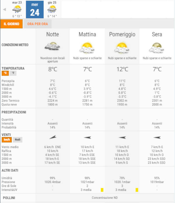 La temperatura massima registrata pare che sarà di 12°C, la minima di 7°C.