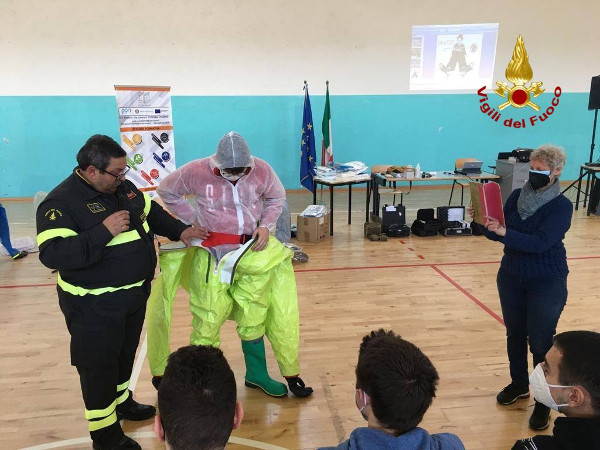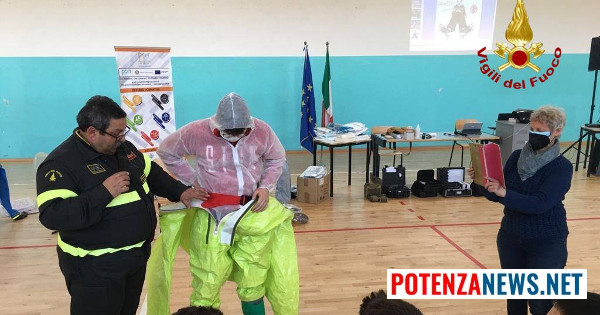Potenza: operatori del Nucleare Biologico Chimico e Radiologico dei Vigili del Fuoco in questa scuola! Le foto