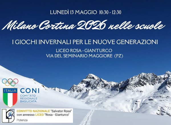 Si terrà lunedì 13 maggio dalle ore 10:30 alle ore 12:30, presso la sede distaccata della scuola Liceo Rosa – Gianturco di Potenza in Via del Seminario Maggiore, la giornata formativa “Milano Cortina 2026 nelle scuole – i Giochi Invernali per le nuove generazioni”, organizzata dal Comitato CONI Basilicata in collaborazione con l’agenzia che, negli istituti scolastici lucani, si occupa dei progetti in materia di alternanza scuola-lavoro.