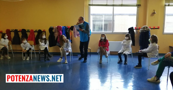 I più grandi della scuola primaria si dispongono in cerchio nel grande salone a distanza di sicurezza, portando con sé le sedie dalle aule. Con loro le maestre Alba Colonna, Basile Maria e Beatrice Gerardi e che prendono posto accanto ai bambini.