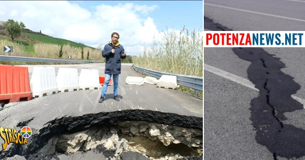 Potenza: Pinuccio di Striscia la Notizia su questa strada della provincia per la sua enorme voragine! L’avete visto?