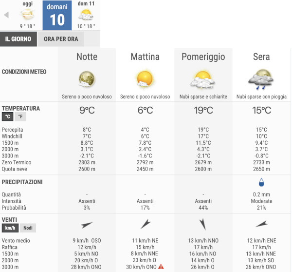 La temperatura massima registrata pare che sarà di 18°C, la minima di 10°C.